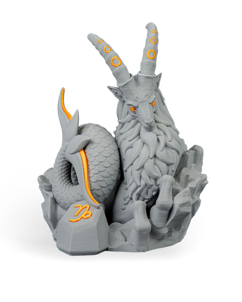 The Zodiac Capricorn sculpture is created with advanced additive manufacturing technology, crafted layer by layer for a distinctive textured surface. Its intricate horns, flowing beard, and sculpted fishtail represent Capricorn’s mythical form, while the grey body accented with golden highlights emphasizes its symbolic blend of ambition and elegance.