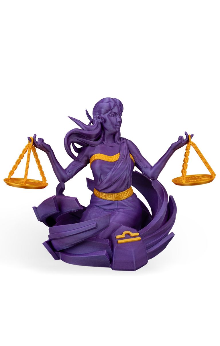 The Zodiac Libra sculpture is expertly crafted using state-of-the-art 3D printing, building each curve and contour layer by layer for a unique textured look. The deep purple figure, adorned with a golden belt and holding the iconic Libra scales, captures the sign’s essence of balance, grace, and fairness.
